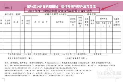 摘要:银行流水无法彻底删除,但可以通过正当途径请求银行删除不必要的交易记录。若误删重要流水记录,需及时联系银行客服恢复。本文揭示银行流水删除真相并提供操作指南,帮助读者正确处理银行流水记录。