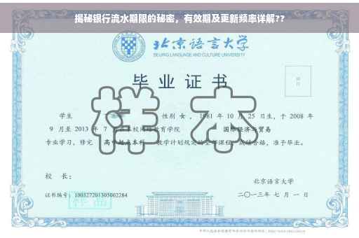 摘要:本文将为你揭秘银行流水的期限秘密,让你了解银行流水的有效期以及更新频率。文章详细介绍了银行流水期限的相关内容,包括其有效期和更新周期,帮助你更好地管理个人财务和应对各种金融需求。无论你是想了解银行流水的日常变化,还是关心其长期有效性,本文都能为你提供有价值的信息。