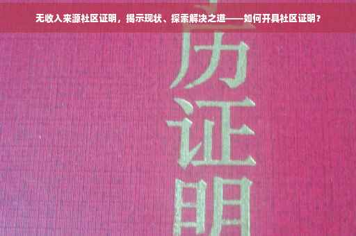 随着城市化进程的加速,社区人口日益增多,其中部分居民因年龄、疾病、失业等原因,生活陷入困境,缺乏稳定的收入来源,无收入来源社区证明作为一种官方证明文件,对于这部分居民而言至关重要,本文将深入探讨无收入来源社区证明的重要性、作用及应对之策。