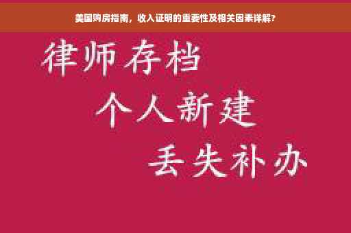 本文将详细介绍在美国购房时收入证明的重要性,以及其他相关因素。文章将解释收入证明的作用,包括证明购房者的还款能力,以及申请房贷的必要条件。本文还将介绍如何准备收入证明,包括提供必要的信息和格式要求等。文章还将涉及其他购房相关因素,如信用记录、财务状况和贷款条件等。本文旨在帮助购房者了解在美国购房时需要注意的关键因素,以便顺利购房。摘要字数控制在约100字左右。
