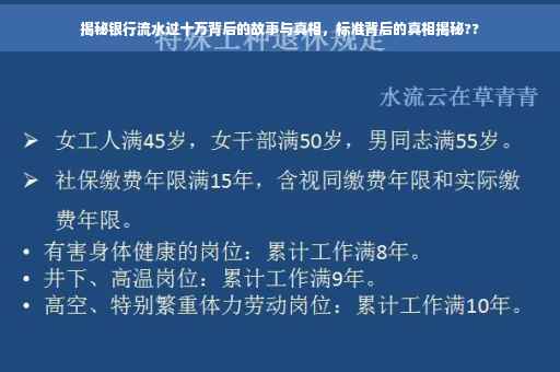 摘要:银行流水过十万是一个引人关注的话题,背后隐藏着许多故事和真相。本文将揭示银行流水过十万的标准及其背后的含义,探讨这一现象背后的原因和影响因素。通过深入了解,我们将一起探索金融世界的奥秘,揭示银行流水过十万背后的故事。