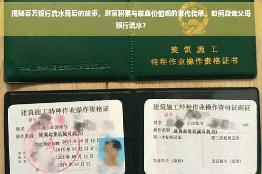 随着现代社会的发展,银行流水百万成为许多人羡慕的话题,这背后隐藏着怎样的故事呢?让我们一起来探讨一下银行流水百万背后的财富积累与家庭价值观的传承。