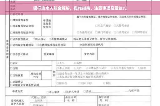 银行流水入账是个人财务管理的重要环节,通过本文的介绍,希望大家能更好地了解银行流水的入账操作、注意事项与建议,更好地管理个人财务,在实际操作中,务必保持警惕,确保账户安全,如有任何疑问,建议及时咨询银行客服或专业人士。
