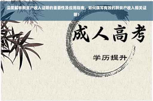 摘要:本文将深度解析脱贫户收入相关证明的重要性,介绍其在实际应用中的作用和价值。文章将指导如何撰写脱贫户收入相关证明,包括证明内容的准确性、详细性以及格式规范等要点。强调证明的重要性在于为脱贫户提供有效的经济支持和社会认可,促进脱贫攻坚工作的深入开展。