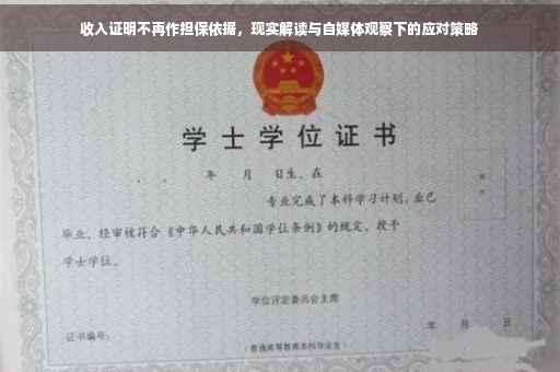 摘要:收入证明不再作为担保依据引起了广泛关注。在自媒体观察下,这一现象反映了现实生活中的经济变化。面对不再依赖收入证明作为担保依据的情况,个人应提高自身的信用意识和风险管理能力,同时金融机构也应完善信用评估体系,确保风险可控。这一变革对于推动社会信用体系建设具有积极意义。