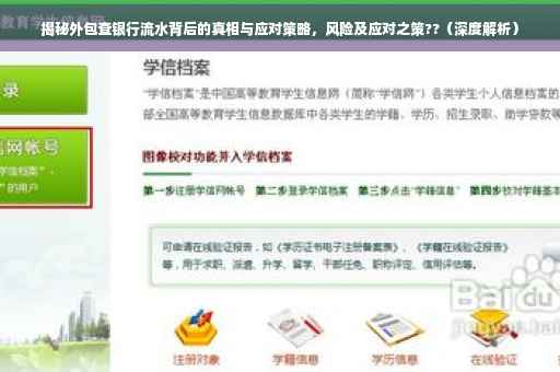 随着金融行业的快速发展,银行业务外包逐渐成为行业内的一种趋势,近期关于外包查银行流水的问题逐渐浮出水面,引起了社会各界的广泛关注,本文将深入探讨外包查银行流水的真相及其背后的风险,帮助公众了解这一现象,并为大家提供一些建议以应对潜在风险。