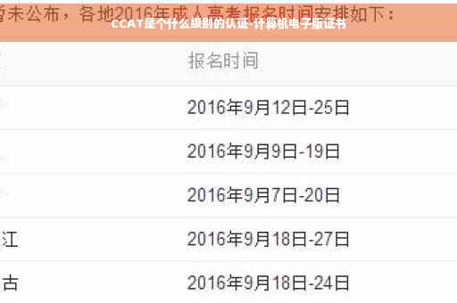 CCAT资格认证是由国家人事部中国高级公务员培训中心和教育部全国高等学校计算机教育研究会共同推出的一种在IT业,重操作技能、重管理能力的一种专业技术认证培训和认证考试。