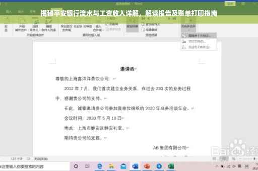 随着金融行业的快速发展,银行业务办理已成为人们日常生活中不可或缺的一部分,在众多银行业务中,银行流水作为个人经济活动的记录,对于个人理财、信用评估等方面具有重要意义,特别是在申请贷款、信用卡等金融产品时,银行流水往往成为评估个人信用的重要依据之一,本文将重点介绍平安银行流水及其与工资收入的关系,帮助广大用户更好地了解和使用这一银行业务。