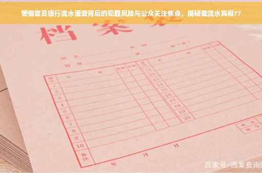 摘要:近期关于查官员银行流水的话题备受关注,背后涉及犯罪风险和公众关注焦点。查官员银行流水是一项重要的反腐措施,但同时也需注意操作过程中的风险。本文将探讨如何合法查官员银行流水,并提醒公众关注相关风险,共同维护社会公正与法治。