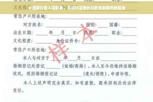 随着金融行业的蓬勃发展,越来越多的人开始关注个人收入的增长与职业发展的关系,作为金融行业的重要一环,中原银行凭借其卓越的服务和创新能力,为广大客户提供了丰富的金融产品和服务,本文将详细介绍中原银行的收入证明表,探讨其背后所反映的财富增长与职业发展趋势。