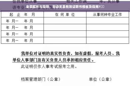 摘要:本内容是关于劳动关系有效证明书的全面解析与指导,包括模板的使用说明。它帮助读者了解如何正确、有效地制作劳动关系有效证明书,确保劳动关系的合法性和有效性。对于企业和劳动者而言,这份指南具有重要的参考价值。
