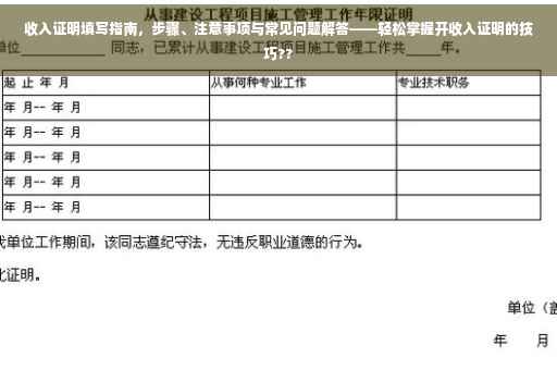 在现代社会中,无论是金融交易、租房还是其他重要场合,收入证明都是不可或缺的一环,作为个人经济实力的直接体现,它在个人信用评估中扮演着至关重要的角色,了解如何正确填写收入证明显得尤为重要,本文将详细介绍收入证明的填写步骤、注意事项以及常见问题的解答,帮助大家轻松完成收入证明的填写。