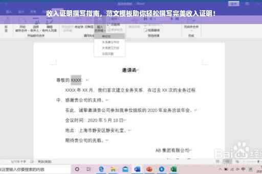 摘要:本指南教你如何撰写一份完美的收入证明,通过提供的范文模板,展示如何撰写规范、清晰、准确的收入证明。内容包括收入证明的基本结构、要点和注意事项,帮助你在撰写过程中避免常见错误,快速完成一份符合要求的收入证明。