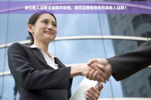 在当今社会,收入证明在各个领域都发挥着举足轻重的作用,无论是贷款申请、信用卡办理,还是租房、入职,一份有效的收入证明都能为我们提供极大的便利,如何撰写一份规范、真实的单位收入证明文案呢?本文将为您详细介绍。