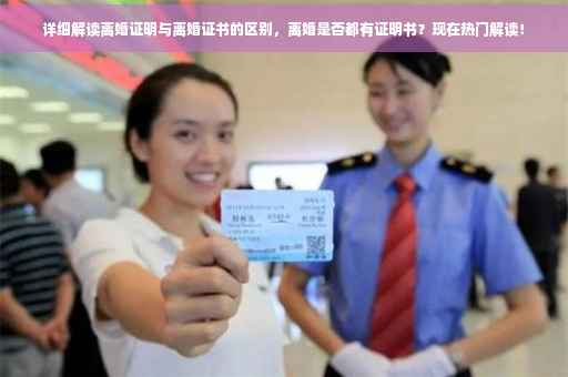 离婚都有证明书,但离婚证明和离婚证书是不同的。离婚证明是证明婚姻关系已经解除的文件,通常由法院或民政部门出具,主要用于证明离婚事实。而离婚证书则是婚姻登记机关颁发的证件,证明双方已经正式登记离婚。两者在法律效力和使用场合上有所不同。随着社会的进步和法律制度的完善,离婚证明和离婚证书的重要性日益凸显。