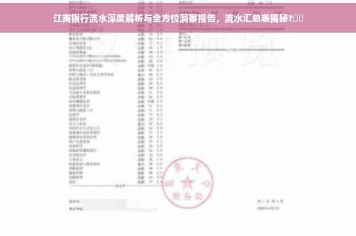 江南银行作为一家拥有深厚历史底蕴的金融机构,其流水业务在广大客户群体中享有盛誉,本文将全面解析江南银行的流水业务,从概述、特色优势、办理流程到常见问题解答,为读者提供全方位的江南银行流水业务指南。