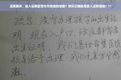 在我们的日常生活中,经常面临各种经济压力,有时可能需要借助外部资金来应对突发情况或实现某些目标,这时,很多人会考虑借款,而在申请贷款的过程中,收入证明往往是一个重要的参考依据,收入证明真的可以让我们顺利借钱吗?本文将对此进行深入探讨。