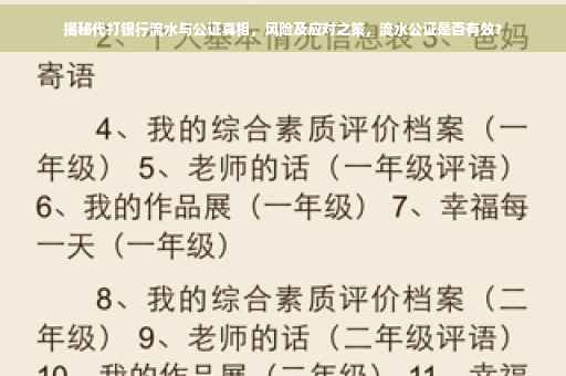 近年来,随着社会的快速发展,金融领域的一些新兴服务也应运而生。“代打银行流水”这一词汇逐渐进入公众视野,与这一服务紧密相关的公证问题也备受关注,本文将围绕代打银行流水和公证两个主题,揭示其中的真相、风险,并探讨应对之策。