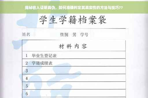 在当今社会,收入证明在求职、贷款、签证等领域扮演着重要角色,随着需求的增加,虚假收入证明也频繁出现,本文将全方位指导您如何准确判定收入证明的真实性,帮助您提高鉴别能力,避免风险。