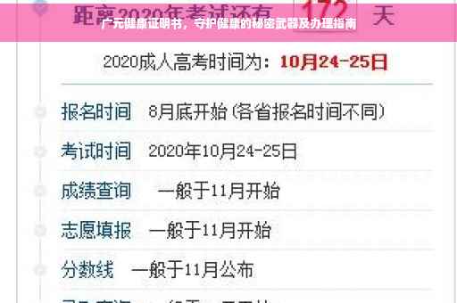 在当今社会,随着人们生活节奏的加快和工作压力的增大,健康问题越来越受到人们的关注,广元健康证明书作为广元地区一项重要的健康服务举措,为广大市民提供了有力的健康保障,本文将详细介绍广元健康证明书的重要性、申请流程、办理条件以及使用注意事项,帮助大家更好地了解和使用这一服务。