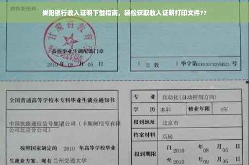 贵阳银行收入证明下载指南:想要下载打印贵阳银行的收入证明,您可以按照以下步骤操作。本指南简洁明了,为您提供便捷的下载打印方式。无论是个人还是企业,都能轻松获取收入证明,满足您的需求。??