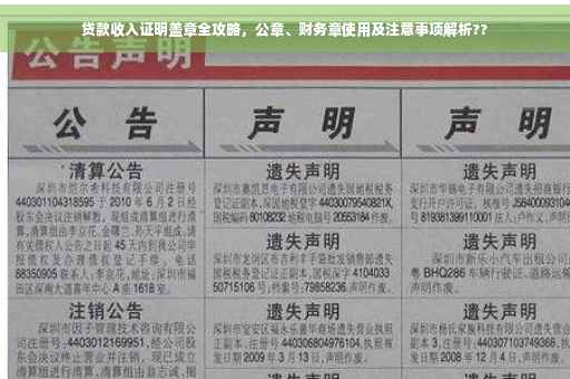 摘要:本文将详细解析贷款收入证明中的公章使用问题,包括流程、要点和注意事项。文章指出,贷款收入证明通常需要盖公章以确保其有效性。本文将指导读者了解何时使用公章,何时使用财务章,并强调在盖章过程中需要注意的事项,以帮助读者顺利完成贷款收入证明。