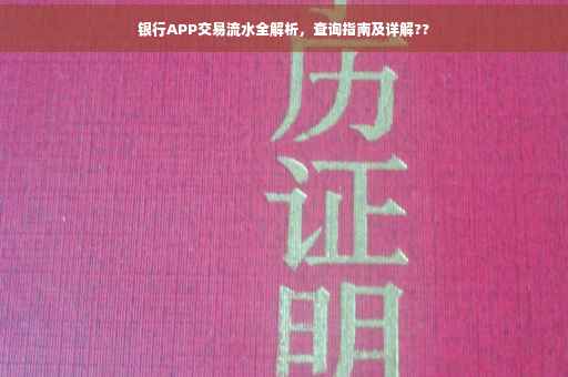 摘要:本文将详细介绍银行APP交易流水查询功能,包括其操作流程、注意事项等。通过银行APP,用户可以轻松查询交易流水,了解账户资金变动情况。本文将指导用户如何正确查询交易流水,并解析交易流水的各项内容,以便用户更好地管理个人财务。