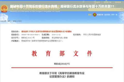 揭秘年薪十万背后的银行流水故事,探究高收入背后真实的财务状况。本文将探讨年薪十万在银行流水中的体现,分析银行流水账单中的收入与支出情况,揭示高薪背后可能存在的压力与挑战。本文旨在帮助读者了解银行流水账单的重要性,并关注个人财务管理的重要性。通过了解年薪十万的银行流水情况,读者可以更好地规划自己的财务计划,实现财务自由。