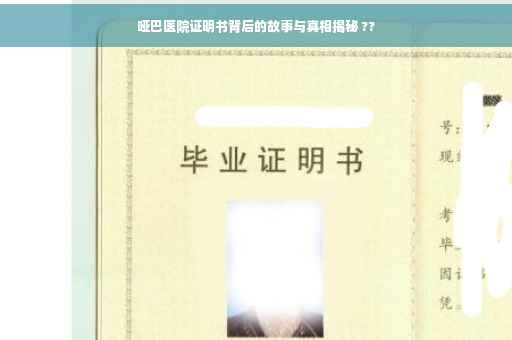 摘要:,,关于哑巴医院证明书图片的背后故事与真相,这张证明背后隐藏着不为人知的情感和经历。哑巴的困境、医院的证明,都反映了社会对于特殊群体的关注和关怀。通过这张图片,我们得以窥见社会的温暖与冷漠并存,引发人们对弱势群体的同情与思考。