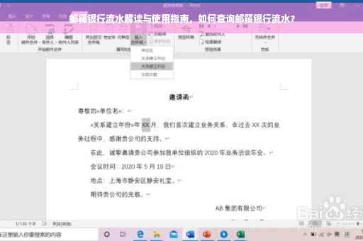 摘要:本文将介绍邮箱银行流水的解读与使用指南。读者将了解如何查询邮箱银行流水,包括流水账单的详细解读方法。通过本文,您将了解如何通过邮箱银行查询账户交易记录,以及如何分析流水账单以做出更明智的财务决策。本文旨在帮助读者更好地管理自己的财务,确保账户安全并有效利用银行服务。