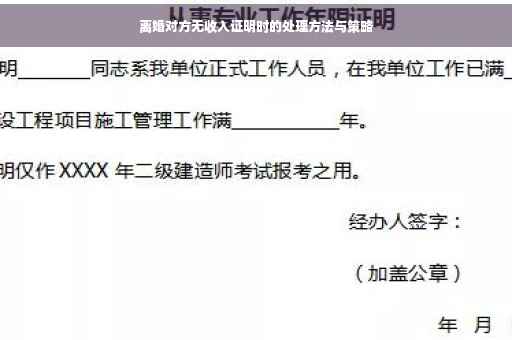 在离婚案件中,收入证明是评估财产分割的重要因素之一,收入证明可以反映一个人的经济状况,有助于确定财产分割的比例,通常情况下,有稳定收入的一方可能会承担更多的财产分割责任,当对方没有收入证明时,情况就变得复杂了。