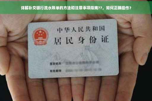 摘要:本文将详细介绍补交银行流水的方法和注意事项。通过本文,您将了解如何准备必要的文件,遵循正确的流程来补交银行流水账单。注意事项包括确保提供准确的流水信息,遵守银行规定的时间限制,并留意可能产生的费用。阅读本文,您将能够顺利完成银行流水账单的补交工作。
