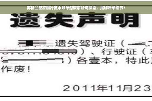 苏格兰皇家银行作为英国历史悠久的金融机构,其服务范围遍布全球,在日常生活中,我们可能会遇到需要处理银行流水账单的情况,如财务审计、税务申报等,本文将详细介绍苏格兰皇家银行流水账单的格式、内容以及如何解读这些信息,以帮助您更好地管理个人财务。