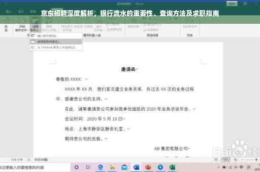 银行流水在京东招聘中扮演着重要角色,求职者需充分了解其作用并遵循相应的求职指南,以更好地把握求职机会,关注招聘信息和动态、遵守招聘规则、不断提升自身专业技能和能力也是求职成功的关键,希望求职者通过本文的介绍,能更好地了解京东招聘流程,顺利入职,共同见证电商行业的辉煌未来。