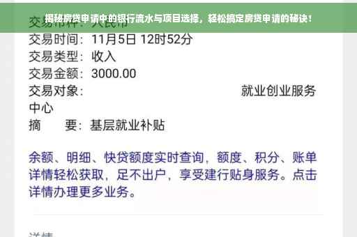 在申请房贷时,银行流水与项目选择是两大核心要素,为了顺利获得贷款,申请人应优化银行流水、保持良好信用记录并密切关注市场动态,在选择房贷项目时,根据自身需求和市场情况,巧妙选择适合自己的项目和产品,希望本文能助你一臂之力,轻松搞定房贷申请!