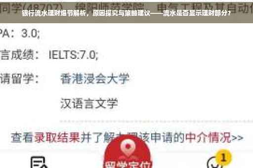 摘要:银行流水不应涉及理财,因为理财部分在银行流水中可能引发误解或不必要的关注。本文深度解析了背后的原因,并给出了策略建议。银行流水应主要反映日常交易和收支情况,避免混淆理财收益与日常支出。理财活动的独立展示有助于投资者进行更准确的财务分析和规划。