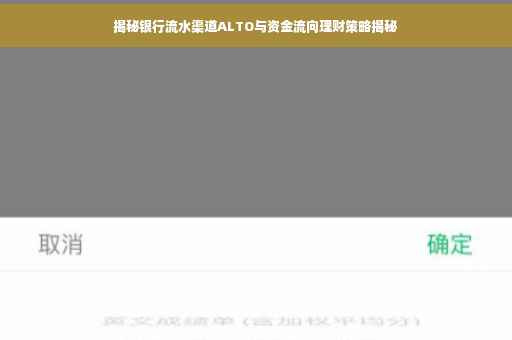 摘要:通过银行流水显示渠道,我们可以了解资金流向,揭示理财策略。ALTO作为显示渠道之一,能帮助我们更清晰地掌握个人财务情况,包括资金流入流出情况、投资资金流向等。了解这些信息有助于我们做出更明智的理财决策,优化资产配置,实现财务目标。