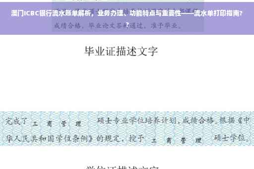 本文详细解析了澳门ICBC银行的流水账单业务,包括其办理流程、功能特点以及重要性等,希望读者能更好地了解和使用这一金融服务工具,在实际使用过程中,请注意保护账户安全,合理利用流水账单进行财务管理和数据分析,如遇问题,可及时咨询银行工作人员或查阅相关资讯。