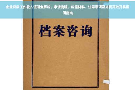 在当今经济快速发展的时代,企业对于资金的需求日益旺盛,贷款成为了许多企业解决资金问题的重要途径,在申请企业贷款时,工作收入证明是银行或其他金融机构评估企业信用和还款能力的重要依据,本文将详细介绍企业贷款工作收入证明的申请流程、所需材料以及注意事项,帮助企业在贷款过程中顺利提供所需证明,提高贷款申请的成功率。