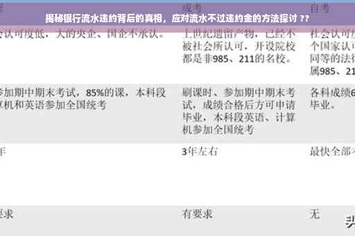 在当今社会,随着金融行业的快速发展,越来越多的人开始关注银行流水的重要性,银行流水作为个人信用评估的重要依据之一,对于贷款申请、信用卡办理等金融业务具有至关重要的作用,在现实生活中,一些人可能会遇到银行流水不过违约的情况,本文将深入探讨银行流水不过违约背后的真相,帮助大家更好地了解这一现象。