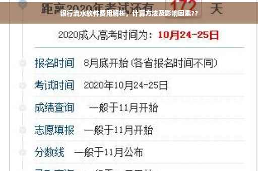 摘要:银行流水软件费用解析,了解费用计算方式。该软件费用根据多种因素而定,包括用户规模、使用时长、交易笔数等。具体费用需结合个人需求和银行政策而定,建议咨询银行客服获取详细费用标准。使用银行流水软件时需注意费用问题,确保合理预算和使用。
