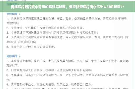 本文将对投行银行流水进行深入剖析,带您揭开这一领域的神秘面纱,我们将概述投行银行流水的含义和作用,然后详细解析其运作机制,最后揭示背后不为人知的真相与秘密。