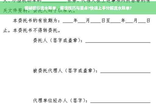 掌握快速分解和解读银行流水账单的技巧与要点,不仅能更好地了解个人或企业的财务状况,还能在贷款申请、财务审计等场合更加得心应手,希望本文能为大家提供有益的参考和帮助。