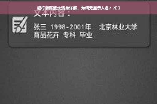 摘要:银行转账流水清单详解,该清单记录了账户间的转账交易情况。通常情况下,清单中不会显示个人名字,只显示账户号码、交易金额、交易时间等基本信息。如需查询或打印流水清单,请前往银行柜台或使用网上银行服务。了解银行转账流水清单的格式和内容,有助于更好地管理个人财务和识别交易记录。