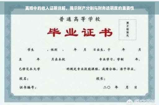 随着社会的变迁和观念的更新,离婚现象在我们的生活中愈发普遍,在离婚过程中,财产分割成为双方关注的焦点之一,而收入证明作为财产分割的重要依据,其重要性日益凸显,本文将围绕离婚中的收入证明展开讨论,揭示财产分割与财务透明度的重要性,帮助大家更好地了解离婚时的财务问题。