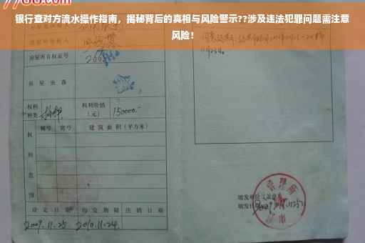 摘要:本文将探讨银行查对方流水背后的真相及操作指南。通过合法途径查询对方银行流水是揭示真相的关键,但需注意避免违法犯罪行为。本文将介绍如何合法查询银行流水,并强调遵守相关法律法规的重要性。读者将了解银行流水的重要性及其在合法范围内的查询方法。