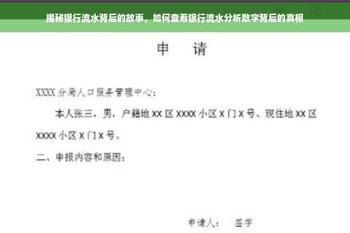 随着社会的进步和经济的发展,银行业务已成为我们日常生活中不可或缺的一部分,在这个数字化的时代,银行流水账单成为了我们日常生活中的重要记录之一,当我们翻开一张张银行流水账单时,那些数字背后的故事,或许正是我们想要了解的,本文将带您一起揭开银行流水的神秘面纱,看看那些数字背后所蕴含的故事。