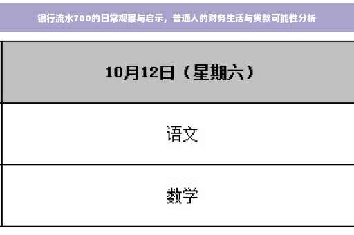 在当今社会,随着经济的发展和科技的进步,银行业已成为人们日常生活中不可或缺的一部分,银行流水作为个人财务管理的重要一环,对于很多人来说是一个重要的指标,本文将围绕银行流水700左右的普通人生活展开探讨,分享一些观察和启示。