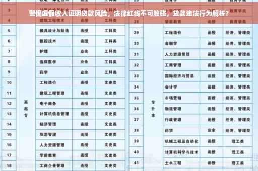 摘要:,,警惕虚假收入证明贷款的风险,切勿触碰法律红线。开具虚假收入证明贷款是违法行为,可能导致个人信用受损并面临法律责任。在贷款过程中,应提供真实、准确的个人信息和收入证明,遵守相关法律法规,以确保个人权益不受损害。