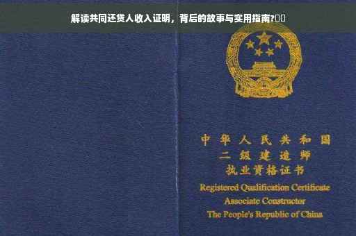 摘要:本文将介绍共同还贷人收入证明的重要性及其背后的故事,同时提供实际操作指南。作为共同还贷人,了解如何准备和提交收入证明文件至关重要。本文将指导读者了解证明文件的撰写要点和注意事项,帮助读者顺利完成共同还贷过程。通过本文,读者可以更好地理解共同还贷人收入证明的作用和实际操作方法。